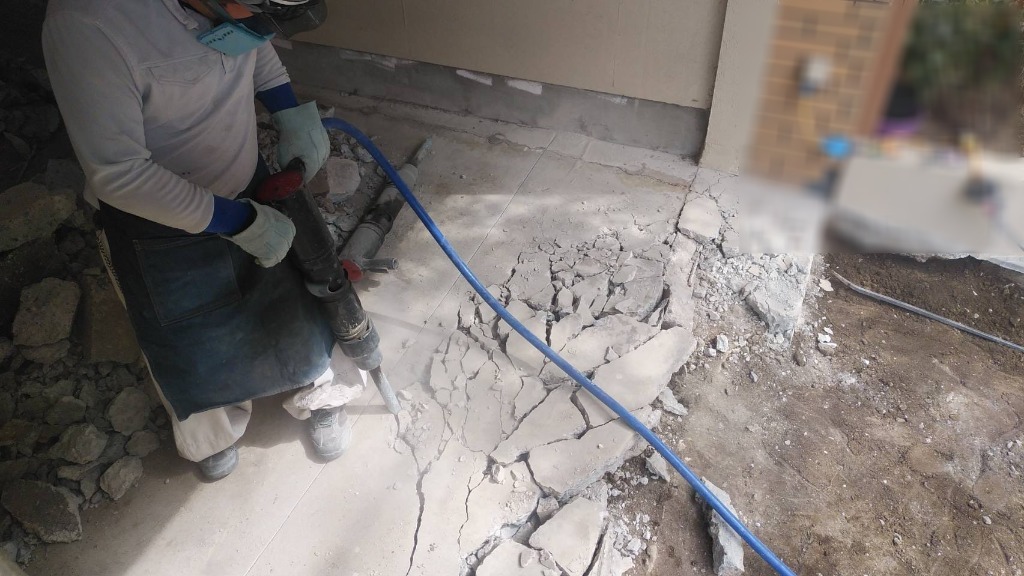 コンプレッサー使用による土間コン撤去工事