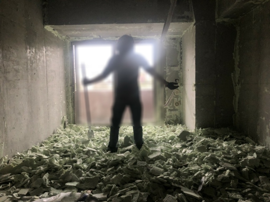 人力による断熱材撤去工事